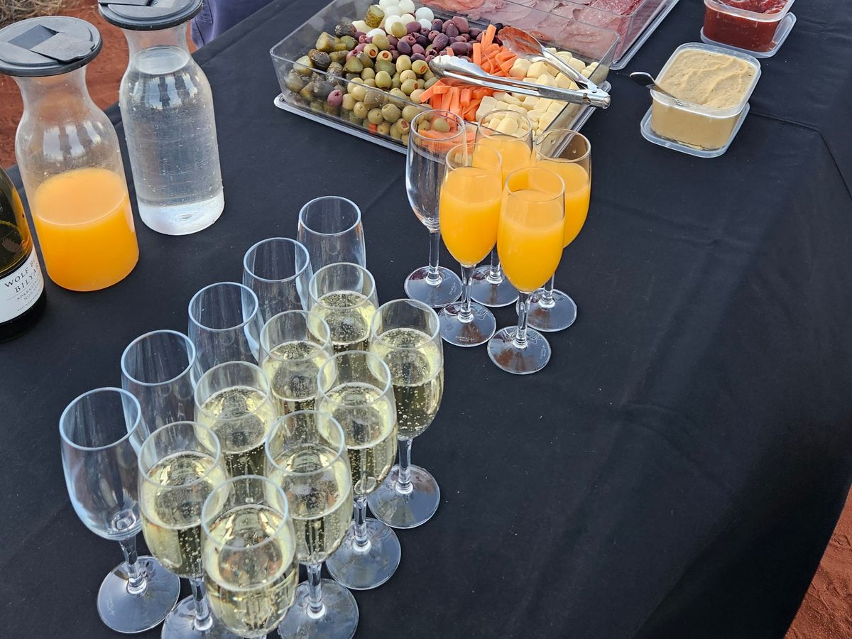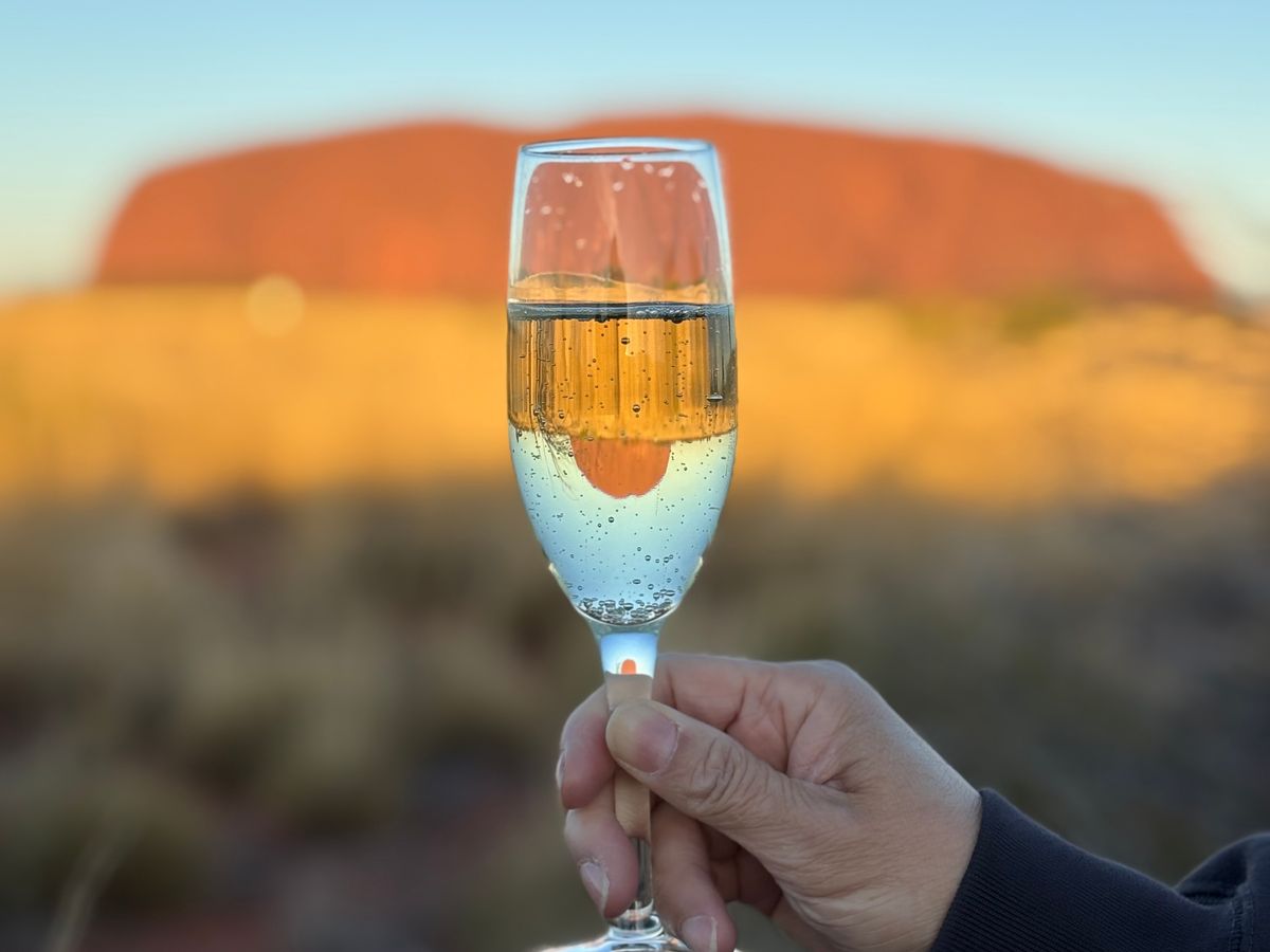 快晴とはいかなかったのですが、夕焼けに染まるウルルとともにスパークリングワインをいただきました。とても良い体験で楽しかったです。おつまみもおいしくてお代わりしてしまいました。ただ、夕方になるとハエが多くて気になる人は対策していったほうがいいです。