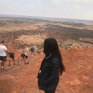 翌朝サンライズは素晴らしかった!展望台は混雑してましたが。その後洞窟壁画や散策しながらウルルのゲイトが開くのを待ちました。開きましたが、ツアーが一時間しか残っていなかったので、3分の2だけ登頂しました。かなりの急傾斜でビビりましたが、景色最高!軍手必須!チョー気持ち良かった!6月でも上は暑かったです。三日目に空港まで送ってもらいました。日本人ガイドは楽しく多くの情報をくれるので、一人でエアーズロックリゾート探検にも役立ちました。ツアーで一緒になった方たちと、他の場所で食事したり、ラクダ牧場で遊んだりと、友達を作れたのも楽しかったです。