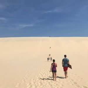 ブリスベンからフェリーで約1時間フェリーに乗り、モートン島へ到着しました!モートン島へ着くと、スタッフの方が待っててくださり、タンガルーマアイランドリゾート内を案内してくださいました!モートン島の海はとても綺麗で、リゾート内ではバナナボードやパラセーリング、シュノーケリングなどといったたくさんのアクティビティがあり、宿泊できて正解だったなと感じました!1日目の午後にはデザートサファリツアーがあり、サンドボードで砂丘を滑りました!その後、個人的に申し込みをしてパラセーリングをしたのですが、空から見えるモートン島の海や島の絶景がとても良かったです。夕方には、野生のイルカに餌付けをしました。野生のイルカをこんなに近くで見れる機会なんて滅多にないのでとても貴重な経験になりました。2日目には朝食ビュッフェがついていて、種類豊富でとても美味しいご飯をいただきました。