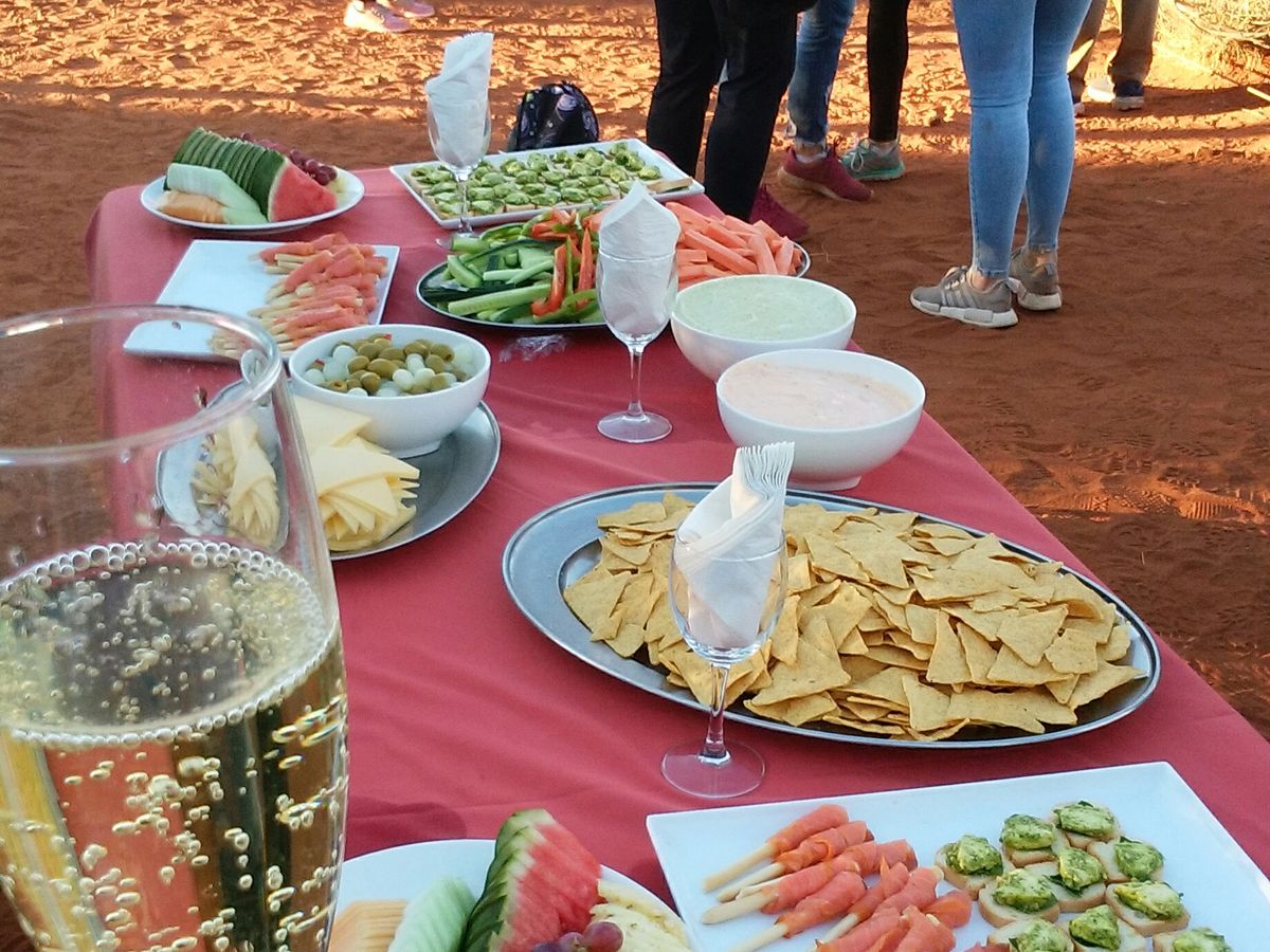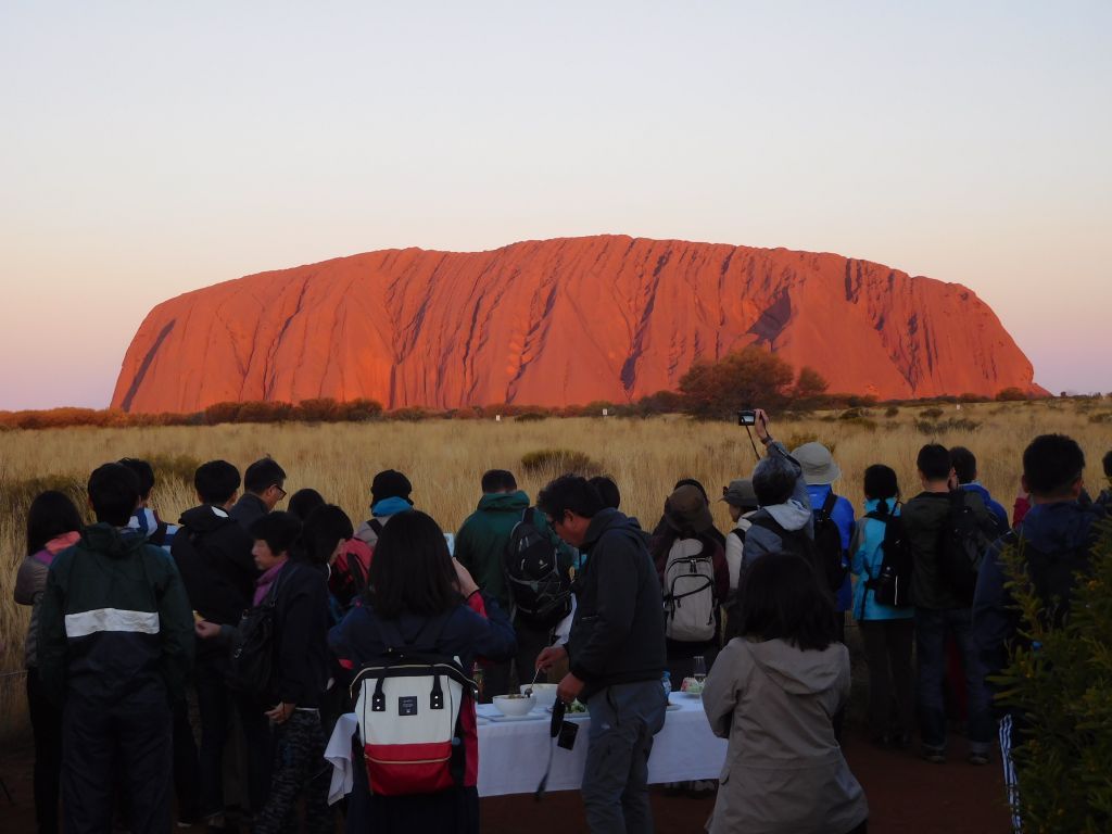 ウルルのサンセットではちょうど良い時間に良い場所に案内してもらい、シャンパンなどのドリンクや美味しいおつまみを用意してもらえました。サンセットは時間をかけてゆっくりと色の変化が楽しめました。