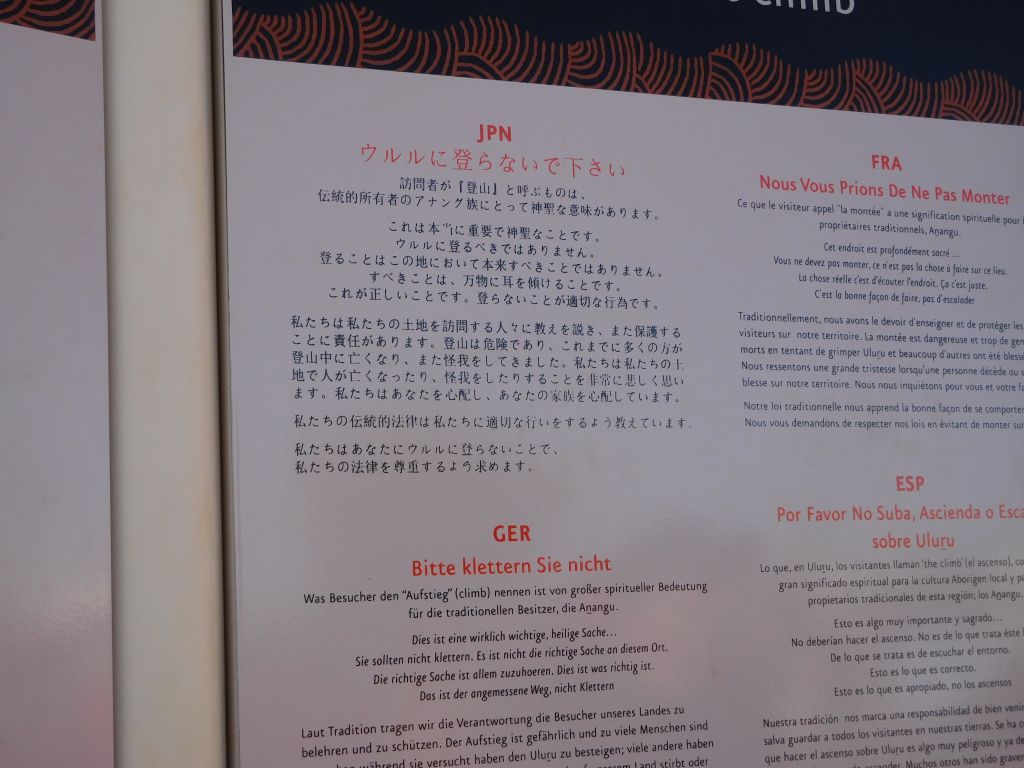 登山口が強風のため閉まっていて、登山はできませんでしたが、周辺散策でウルルを間近に感じ、またガイドさんの説明でアナング族の歴史や生き方みたいなものを詳しく知ることができました。