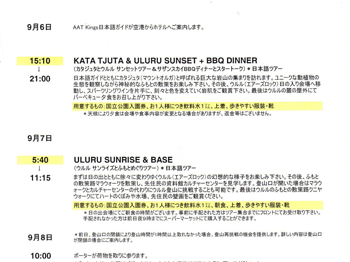 はじめてのウルルであれば、このツアーで問題ありませんが、2日目の午後や、3日目時間が、かなり時間があくので、レンタカーを予約しておくともっと楽しめると思います。