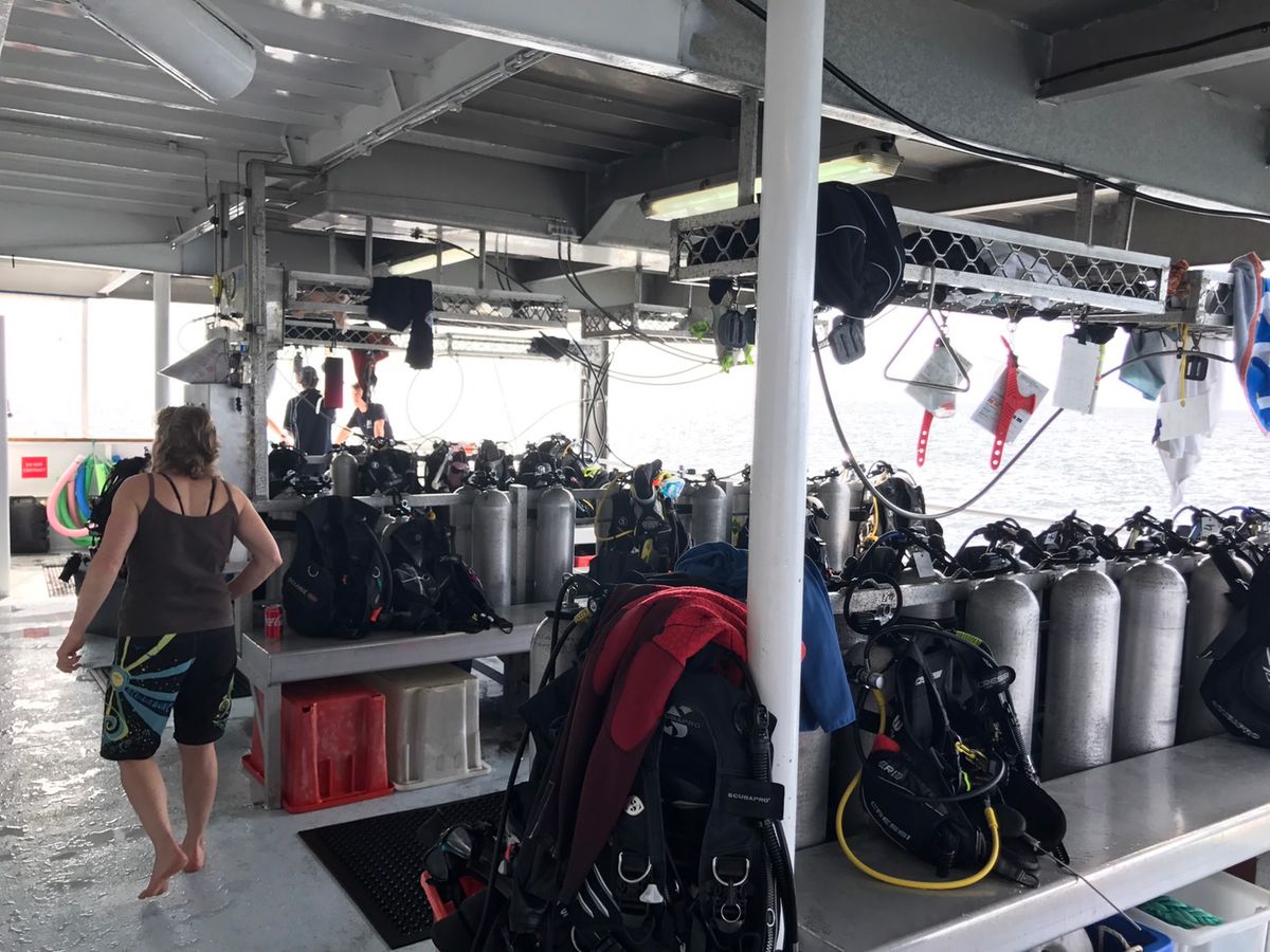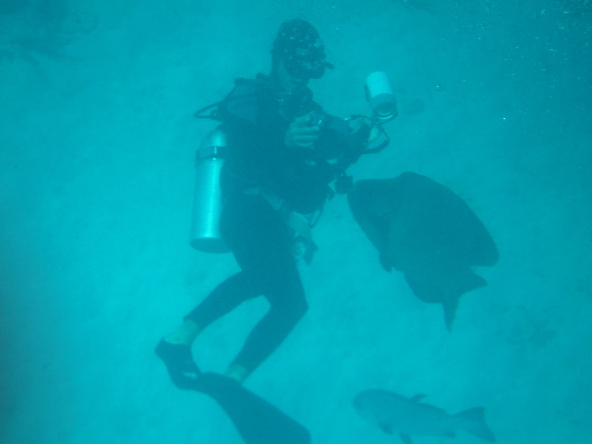 透明度が悪く、体験ダイビングに参加しましたが、魚はあまりおらず。いつもいるはずのナポレオンも、時間的にまだ来てなくて、残念でした。