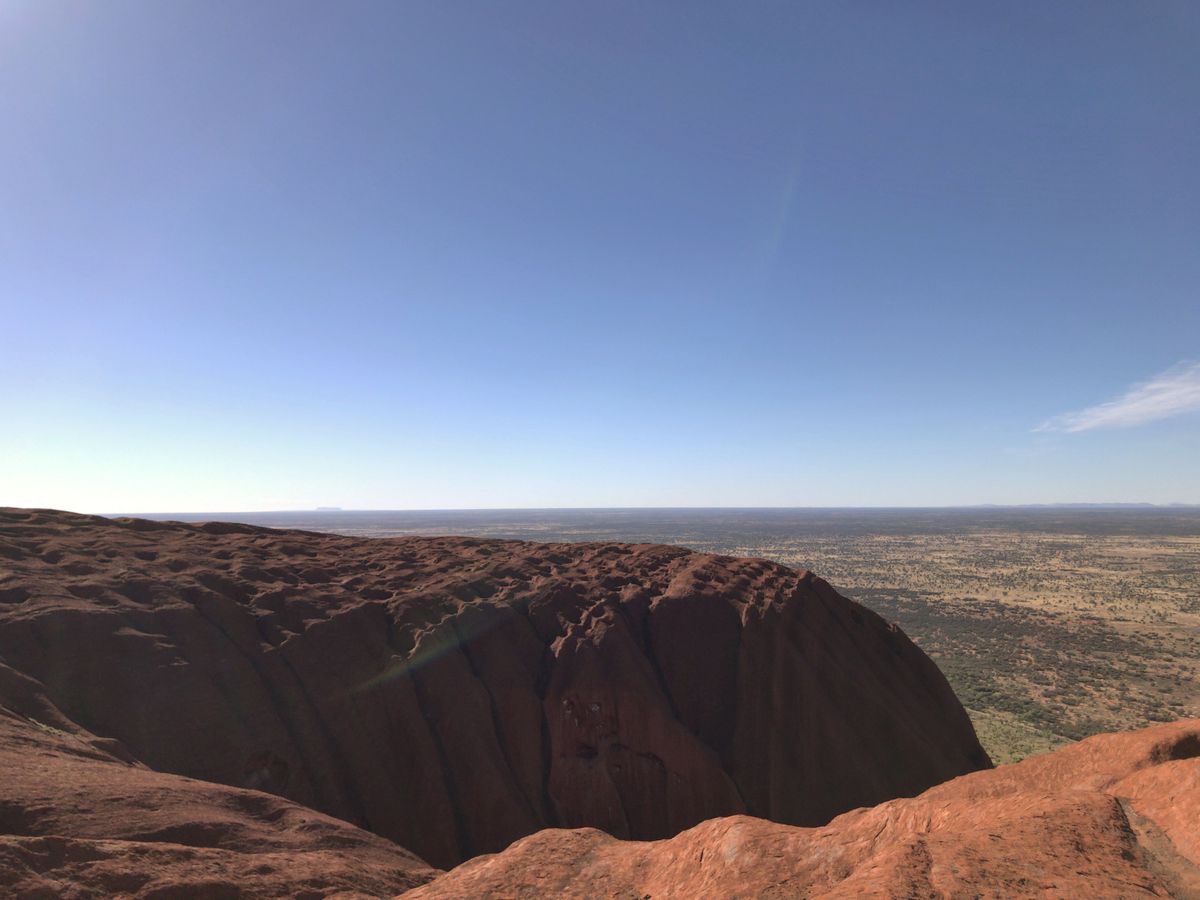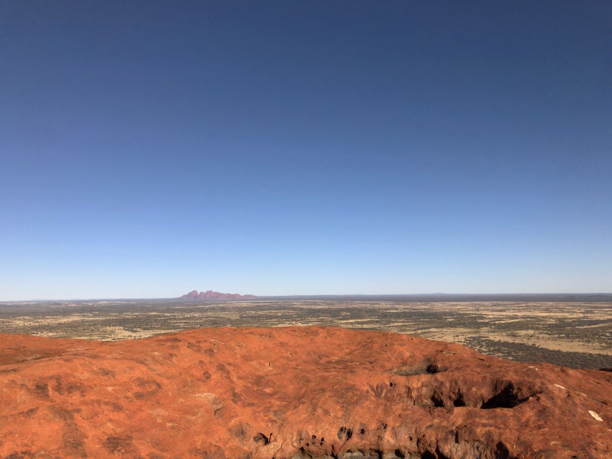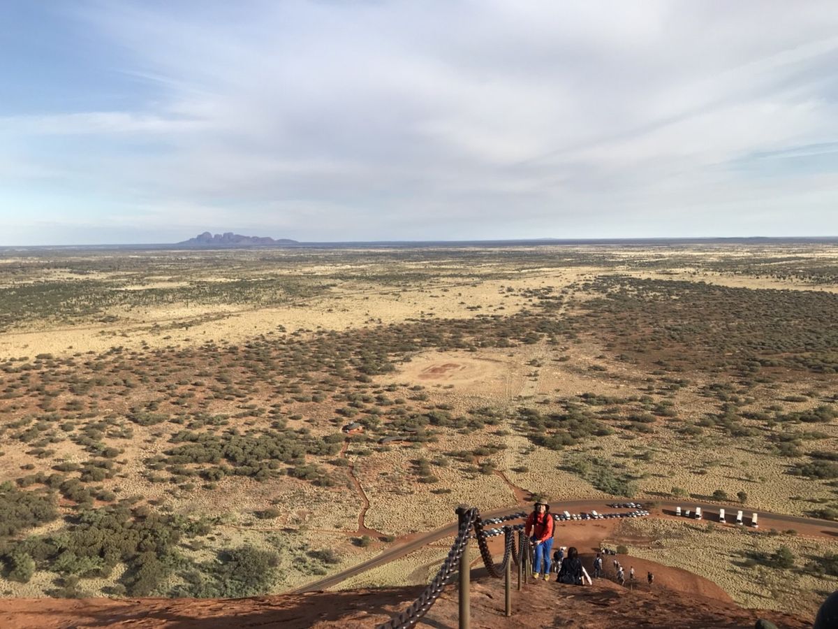 2日目、ウルルの日の出から念願のウルル登山。登山口が開く確率は年間30%らしいので非常にラッキーです。ウルルは前半が勾配がきつく、また砂岩のため滑りやすいため中々のスリルです。途中まで貼られている鎖を掴まないと危ないです。予想以上にタフなアクティビティでしたが、頂上から見る景色は他の何物にも変えがたい素晴らしいものでした。所有者であるアボリジニ(アナング族)は観光客がウルルに登ることを望んでいないので、少し複雑な心境でしたが、2019年10月26日までは登山許可されているため、今しかできない経験、ということで登らせていただきました。