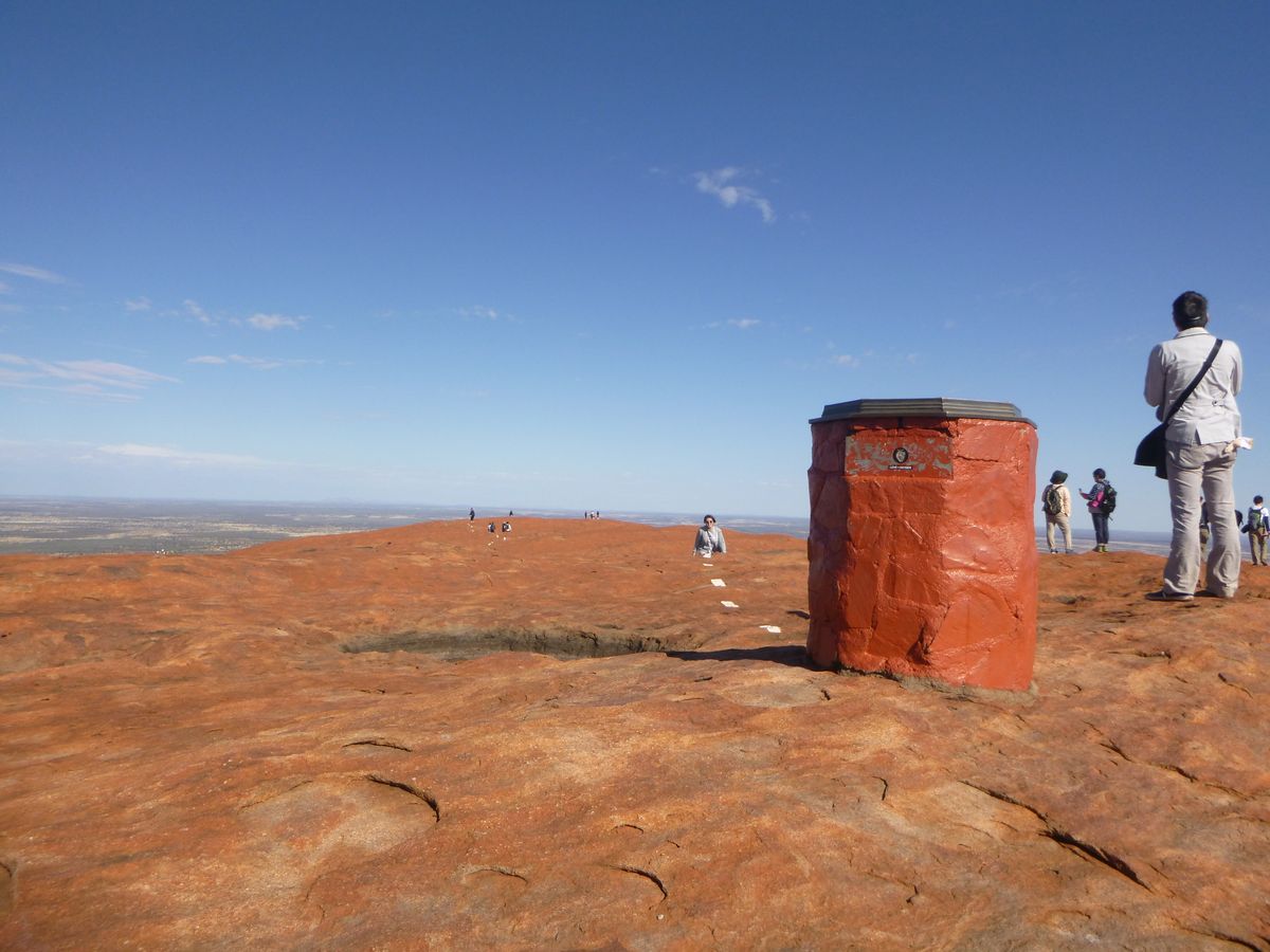 登山はアボリジニの方々の気持ちと自分の気持ちとのせめぎ合いでしたが、結局登らせていただきました。足場のない岩肌と傾斜で思った以上に危険を感じましたが、怪我もなく無事に登れました。やはり、できるだけエッジの効く靴と長ズボンで登られた方がいいと思います。麓はハエが多いので(湿っている目や口や鼻によってくる寄ってくる)ネットが重宝しました。