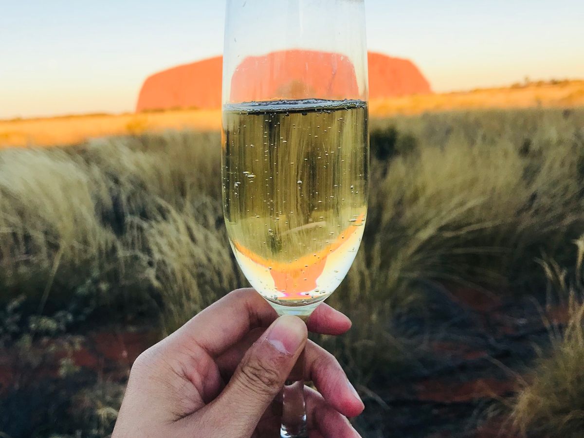 その後、シャンパンとカナッペを片手にサンセットウルル鑑賞。日が沈むにつれ徐々に表情を変えていくウルルに感動。