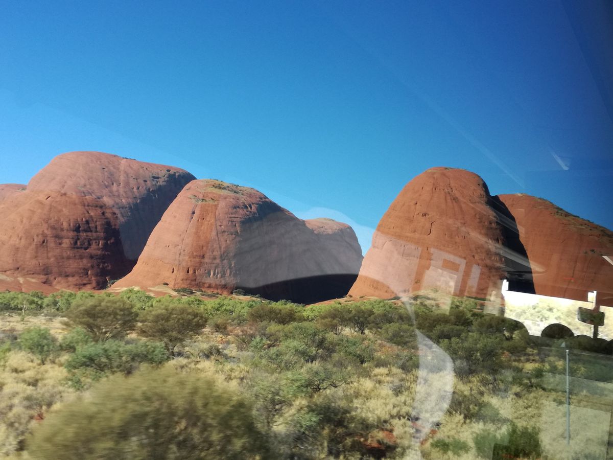 午後2時頃にウルルの空港に着いたら、ホテルチェックイン時間もなく、空港からのバスで、直接オルガ散策、サンセットツアーと開始。