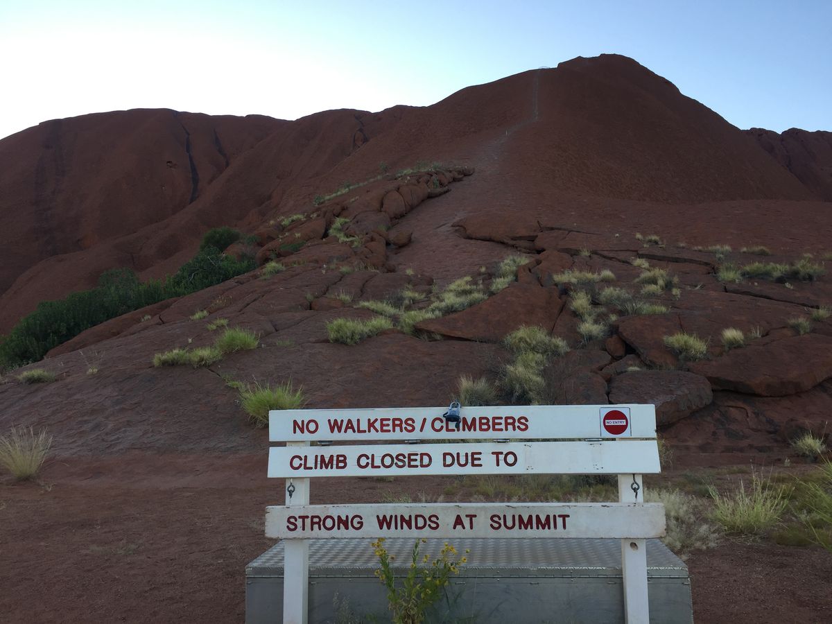 翌日再挑戦できるプランではありましたが、10:25発のアリススプリングス行きの飛行機に搭乗予定だったので実質的に再挑戦は不可能(シドニーへの直行便なら可能)だったのと、翌日の予想最高気温が36°Cを超えるということで8:00以降は登山道が閉まることが確定しており条件的にも厳しい状況でした(他にも色々条件があるみたいですが、乾季の間は気温と風による閉鎖が多いようです)