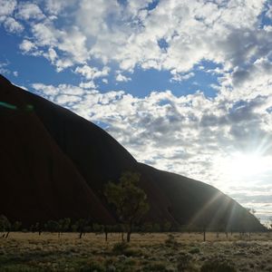 8月のウルル。日中は25℃、夜は10℃まで気温が下がりました。夏から冬くらいの服装の幅があった方が冬場はいいと思います。