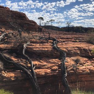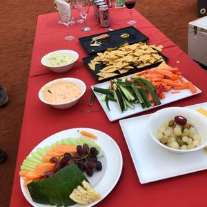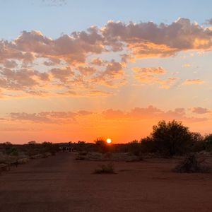 ウルルはハエが大発生で、とにかくネット無しではいられませんでした。夕焼けに輝くウルルの美しさは期待以上のものでした。ほんの1〜2分でしたが、束の間の自然美に感動しました。待ってる間に生野菜やフルーツを振る舞ってもらい本当に美味しくいただきました。星空は無かったけど、お料理は思いの外美味しく楽しいひと時でした。キングスキャニオンは遠く、朝の4時出発し、3時間半バスに乗り36度の中をトレッキングなんて景色も良かったけど、もう二度と出来ない体験でしょう。