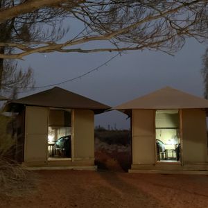 テントに戻ると、オードブルが出た中央テントに飲み物などがあり、夜景をみながらゆっくりするもよし、テントに持って行くもよしでした。テント内は気持ちのよい肌寒さで、寝る前に電気毛布を入れておけば、寝る間は切るほど快適。(ロングTとパジャマ下)トイレとシャワールームはテントから歩いてすぐ。滞在ホテルよりも新しくきれいでした(笑)