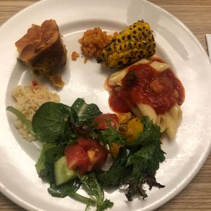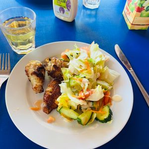到着した昼もランチがありました。アルコールの提供はないと書いてありますがスパークリングワインの提供がありました。朝食もボリュームありです。