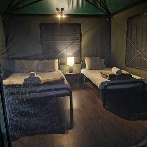 テントは簡易な建物ですが、電気のコンセントがあるので、携帯など充電ができるし、照明もありました。トイレもシャワー完備されていました。ただ、8月ですが、かなり寒いのでしっかり防寒対策は必要です。私は薄いダウンの寝袋を持参して正解でした。
