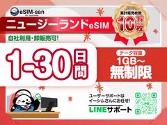eSIMサービス ニュージーランド全土対応 <1日1GB~無制限/最大30日間/日本語LINEサポート利用可>