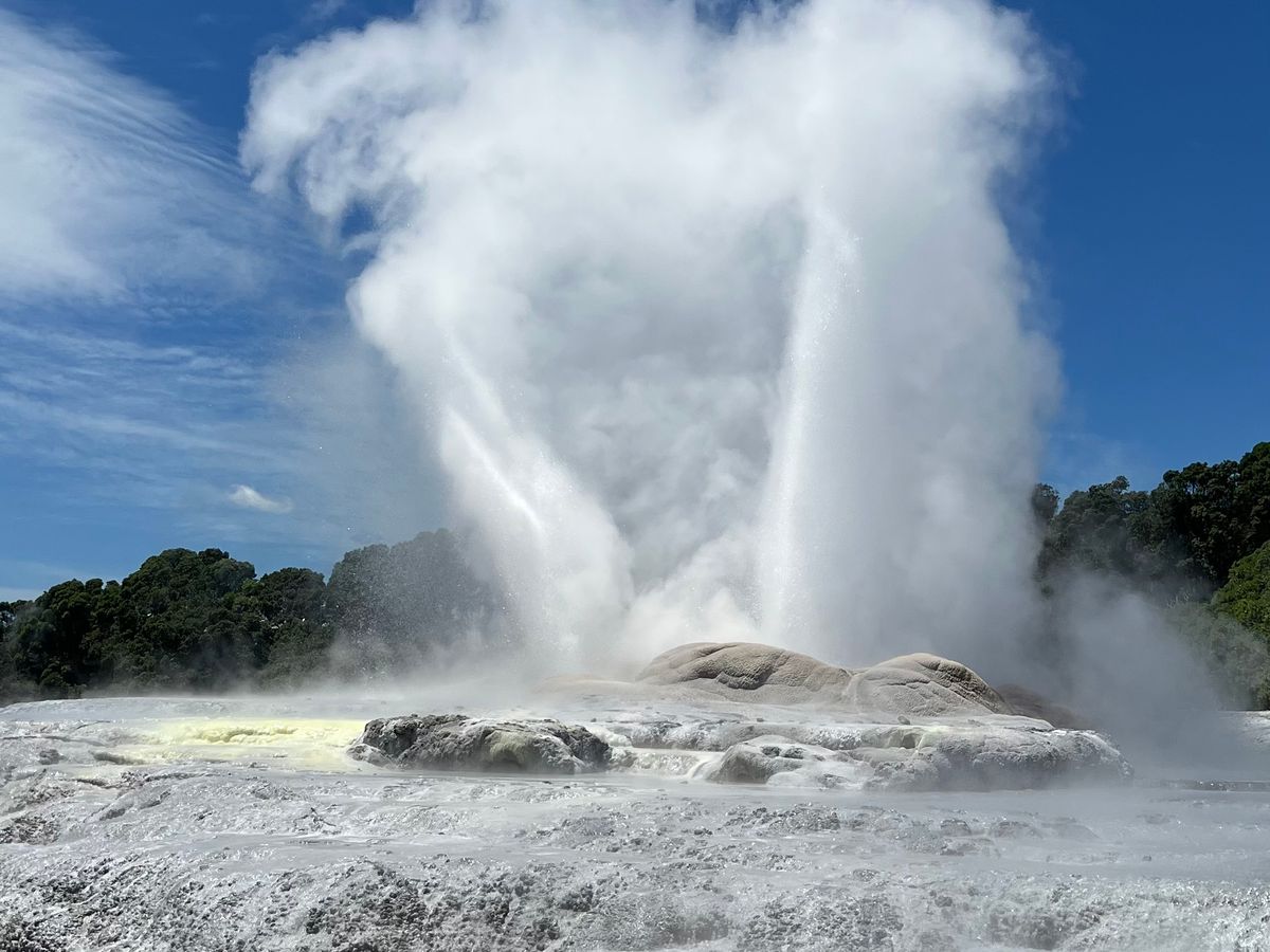土ボタルは神秘的で、可愛いキーウィも見ることができました。運良く間欠泉が噴き出るシーンにも出くわしました。