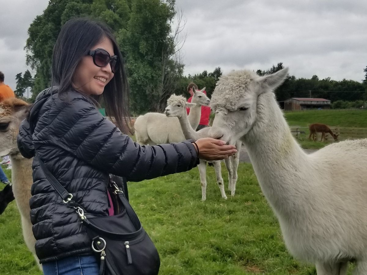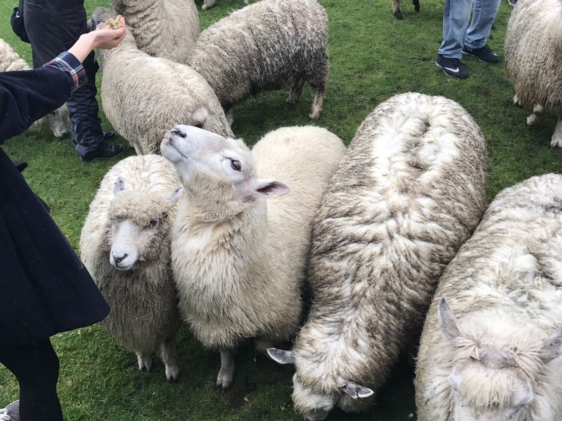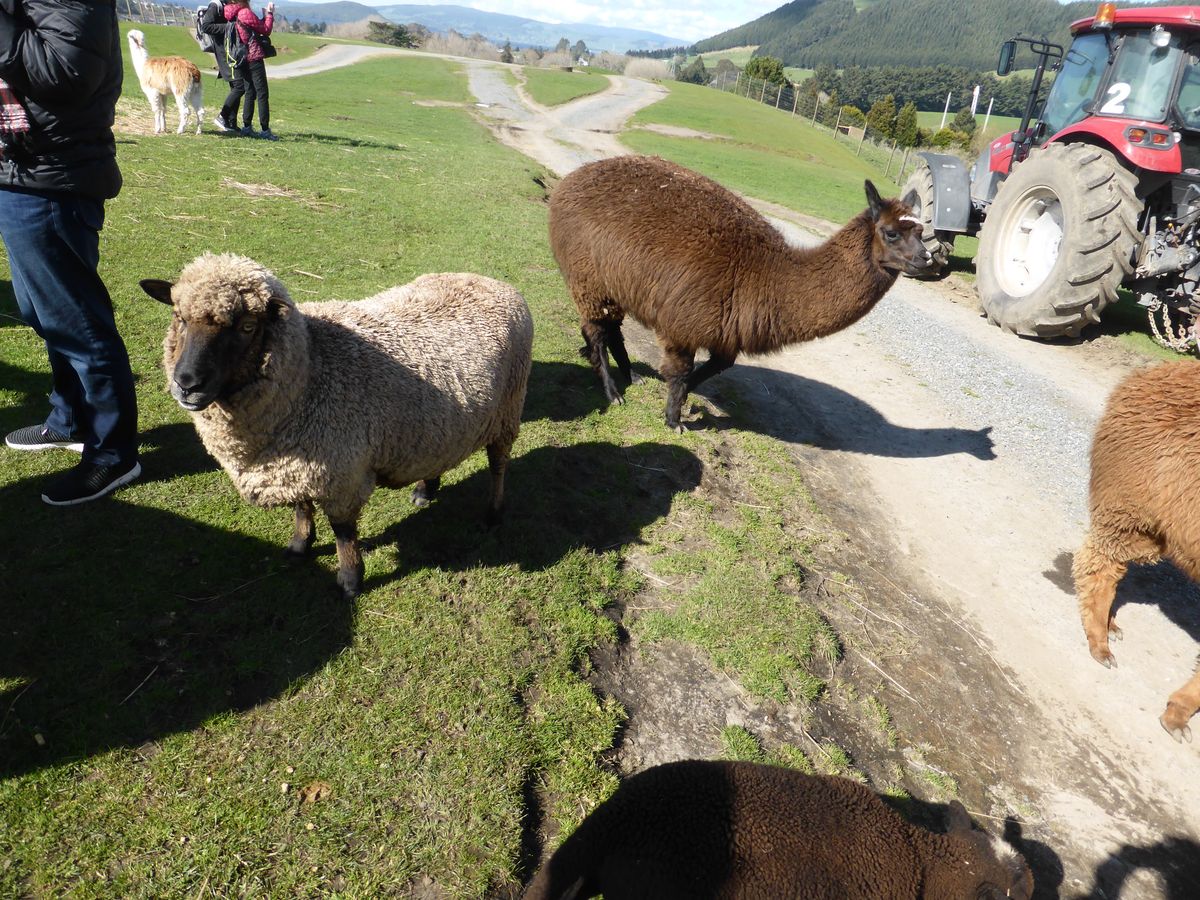その後に訪れたアグロドームでは、トラクターに乗って農場を一周するツアーがおもしろかったです。トラクターが近づくといっせいに動物が寄ってきます。それは羊だったり牛だったりアルパカだったり。彼らに直接エサをあげることができるので、すぐ間近に見ることができます。