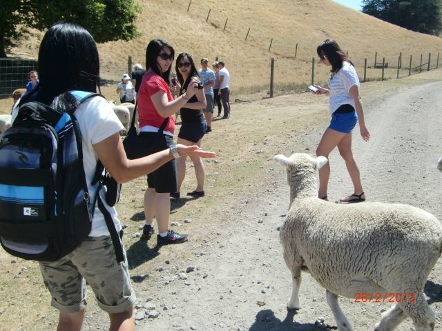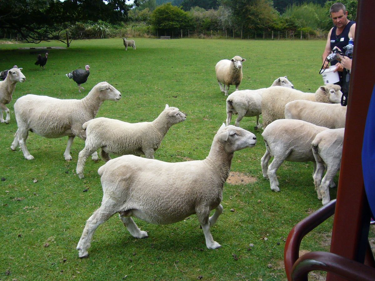 アグロドームは観光牧場。日本人には現地で働く日本人がガイドについてくれます。お世話になりました。ありがとうございました。羊やダチョウへの餌やり。牧羊犬が羊を指定場所へと誘導するショー、羊の毛刈り実演と盛りだくさん。羊が目の前であっという間に丸裸。