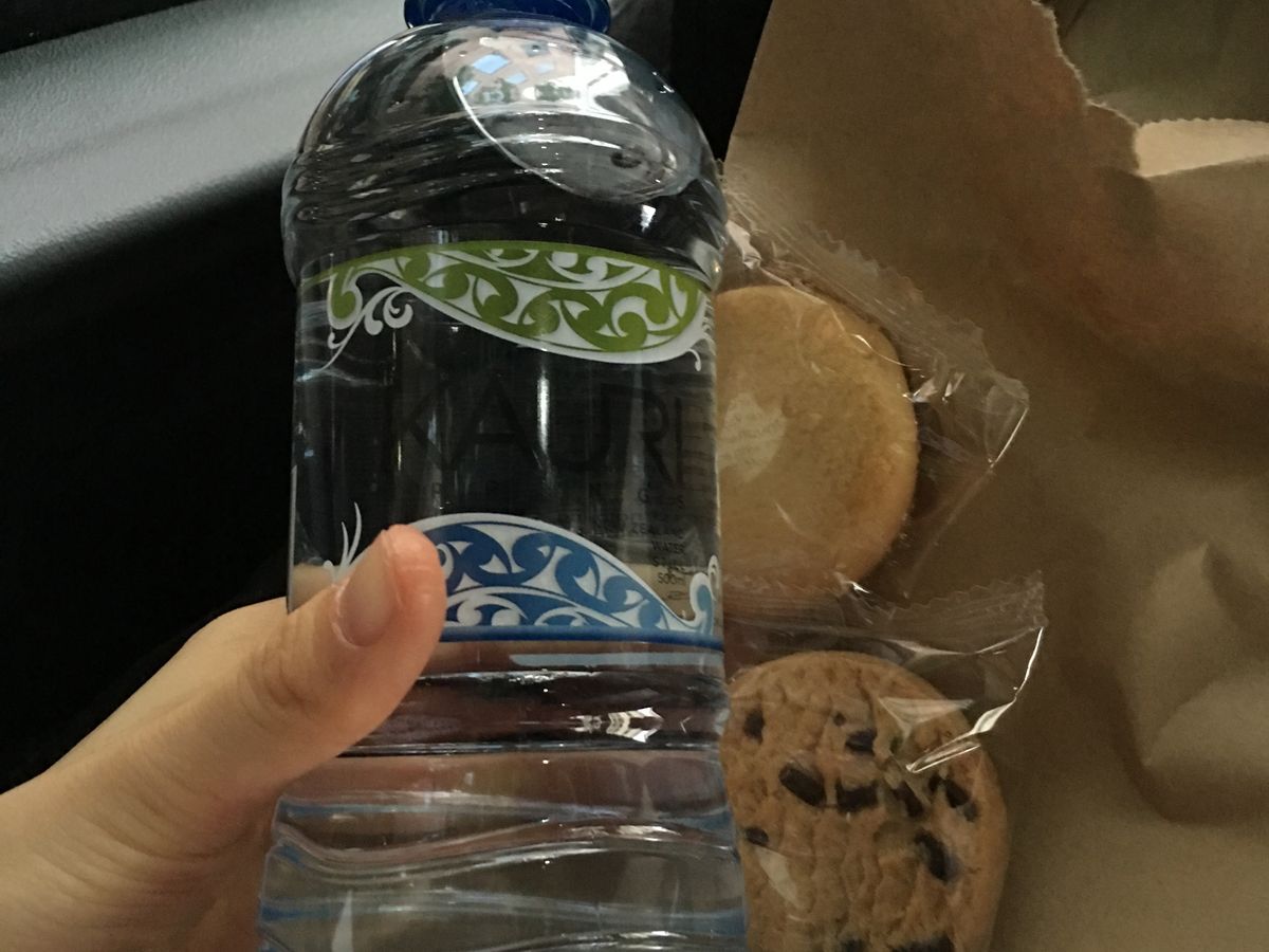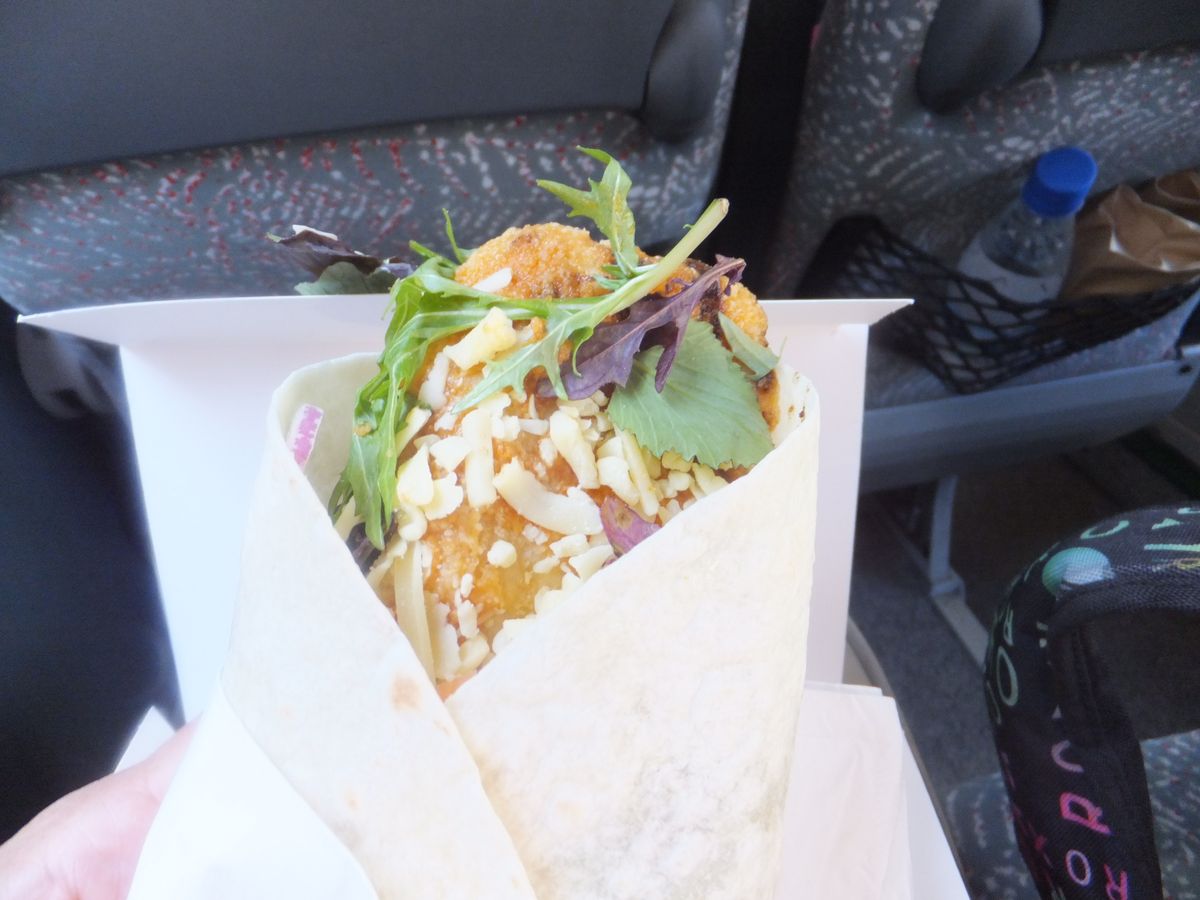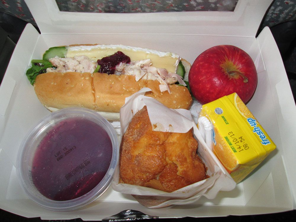次のアグロドームへの移動中、車内で「軽食」。チキンサンドにマフィン、デザート付き。ボリュームがあって味もよく、とても「軽食」とは思えませんでした。
