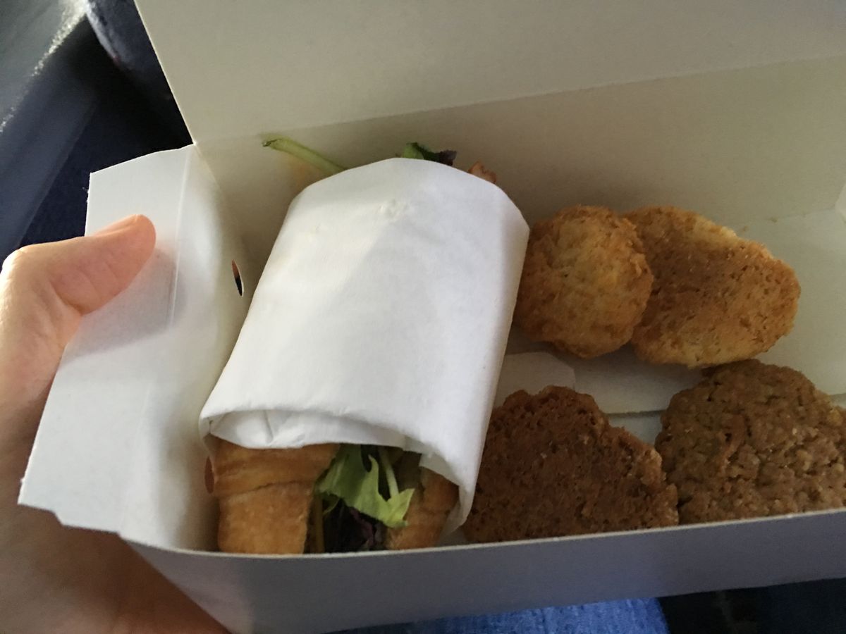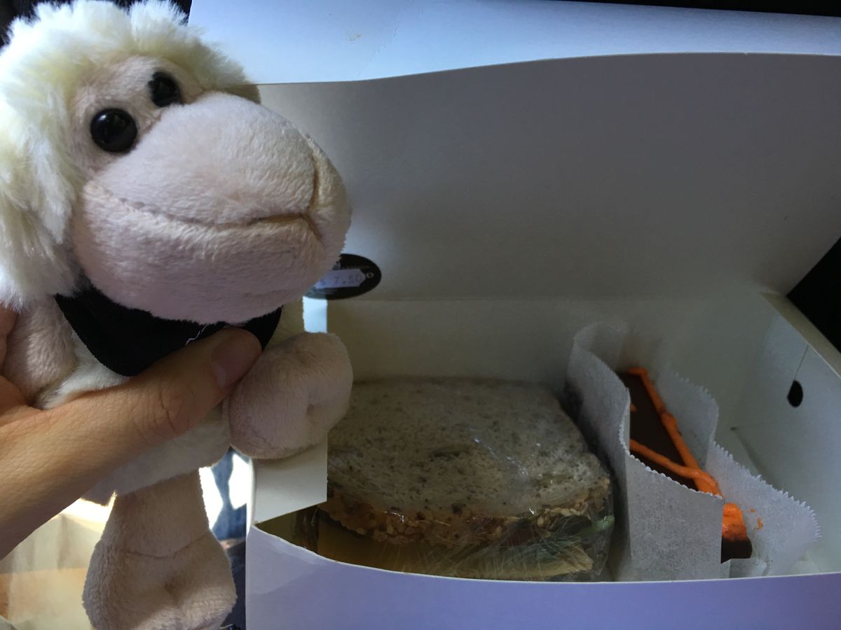 昼食は、チキンサンドかベジタリアンサンドが選択できます。