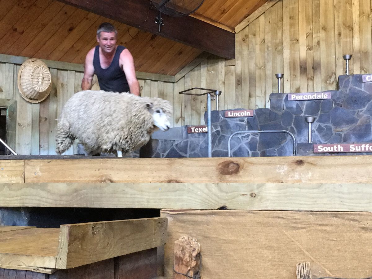 アグロドームでは現地で働く日本人スタッフがガイドについてくれます。羊やダチョウへの餌やり。牧羊犬が羊を指定場所へと誘導するショー、羊の毛刈り実演と盛りだくさん。羊が目の前であっという間に丸裸。