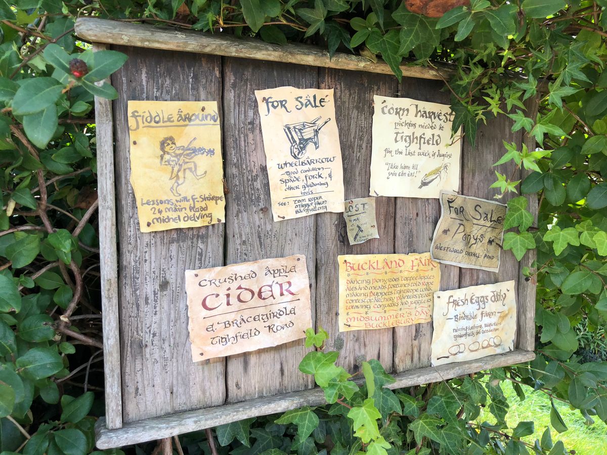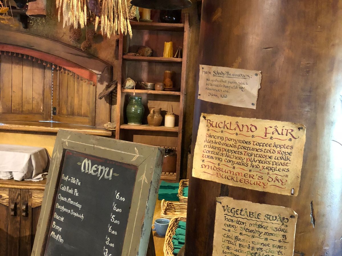 飲みかけのコップやチェスのおかれたテーブルや、かわいく干された洗濯物、そしてビルボのパイプがちょこんと置いてあるベンチなどなど、建物や庭や畑の本物っぷりに加え、こまかい演出も可愛く、行った人がみんな幸せな気分になれるホビットの村でした♪