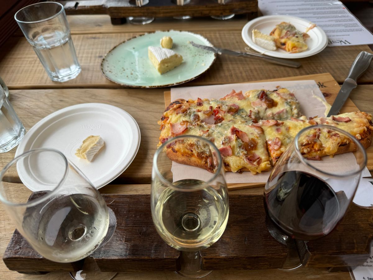 旅の最終日で、自分で回りたいところもあったので短めのツアーを探してたどり着きました。午前10時から午後2時までぐらいで、走行距離も少なく、疲れませんでした。テイスティングは3箇所、約10種類。たっぷり注いでくれるので全部飲むとかなり酔います。余ったのを捨てるのも気が引けるので、途中からは「少しだけ」とお願いしました。昼食のピザとチーズも美味しかったです。