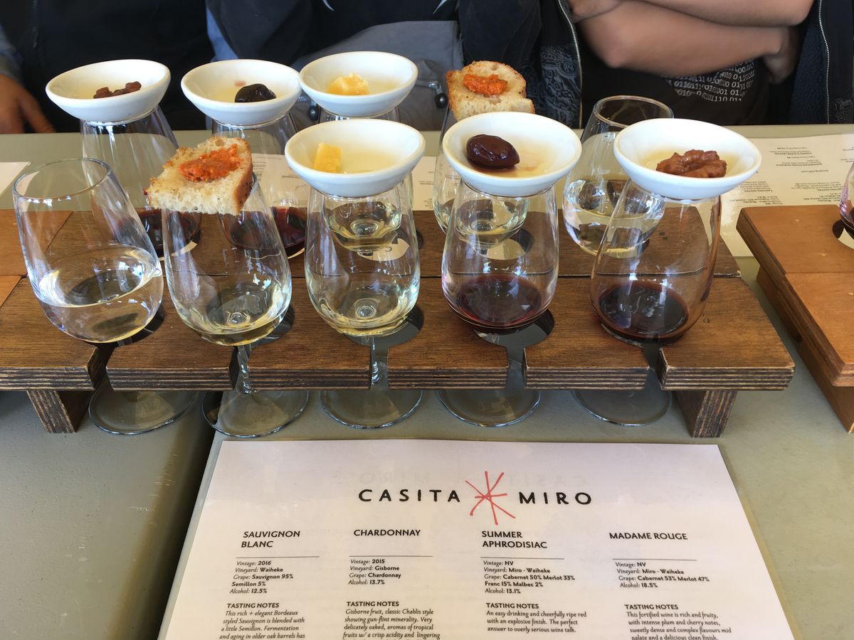計3組で計6名の小規模ツアーですが、大型バスでゆったり移動。掲載されていた順、ワイナリーではなく、オリーブ園から訪問し、2番目のワイナリーは行程と異なり、ケーブルベイワイナリーというところでした。どこも緑の中で海を見渡せ最高の景色でした。昼食はメインが出てこず、やたら待たされワイナリー時間が短くなり、量はイマイチで、サシミサラダというマリネ風の刺身にキャベツがのった微妙なものでした。最後に行った有名なマッドブリックスワイナリーは、ワインがとても美味しく2本購入しました。ただ、TOEICでリスニング満点ですが、ニュージーランドの地元参加の2組の世間話トークについていけず、辛かったです。