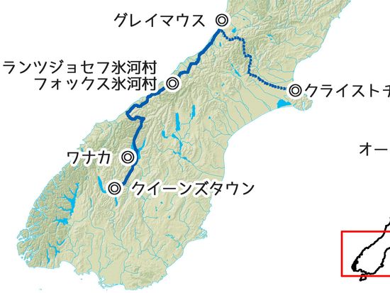 - フォックス・グレーシャー村またはフランツジョセフ・グレーシャー村でのお客様の宿泊先情報、ツアー終了後のクライストチャーチ市内お送り先もご予約画面でお知らせください。手配の関係上、催行日の20日前までには宿泊先をご登録ください。