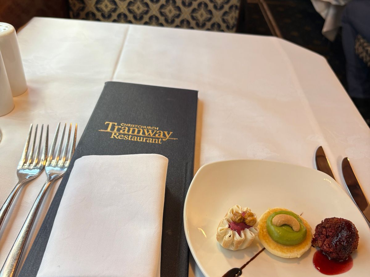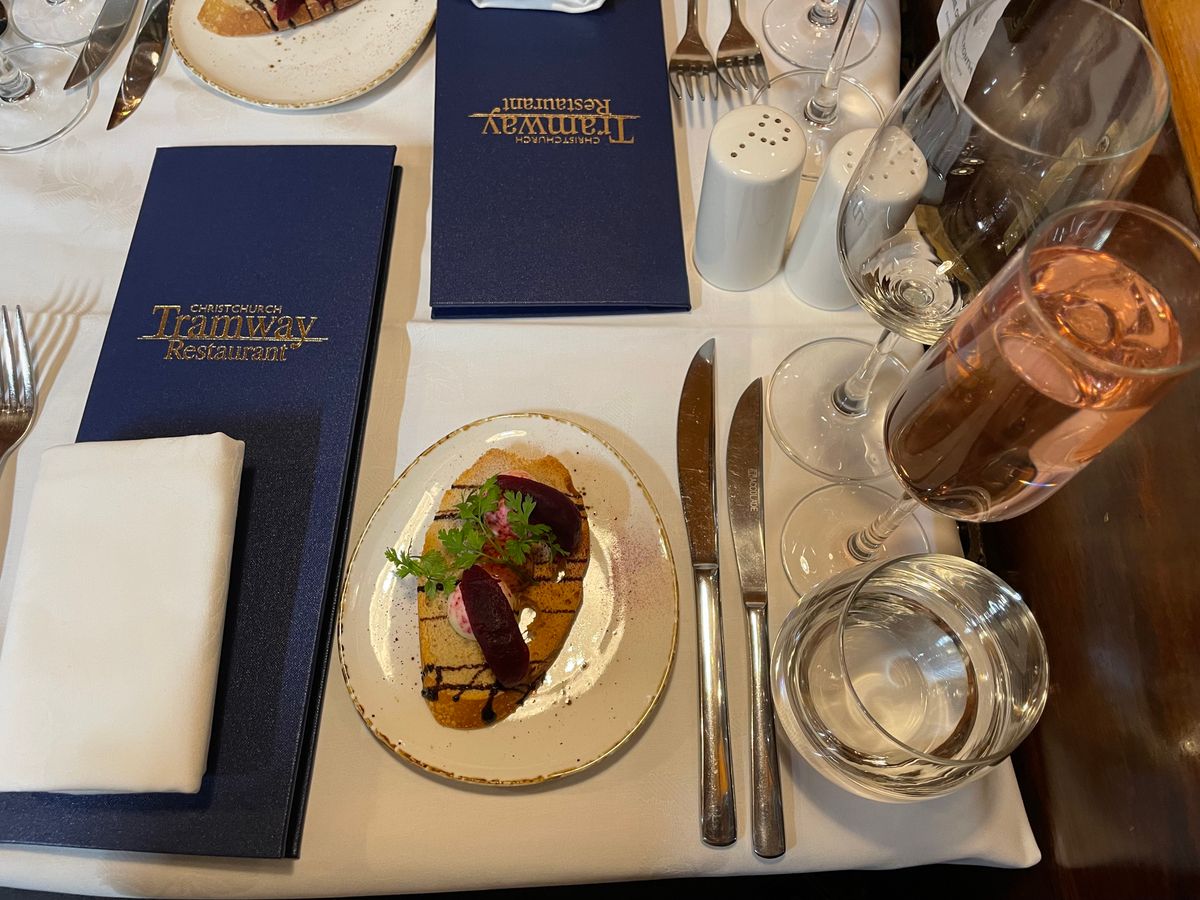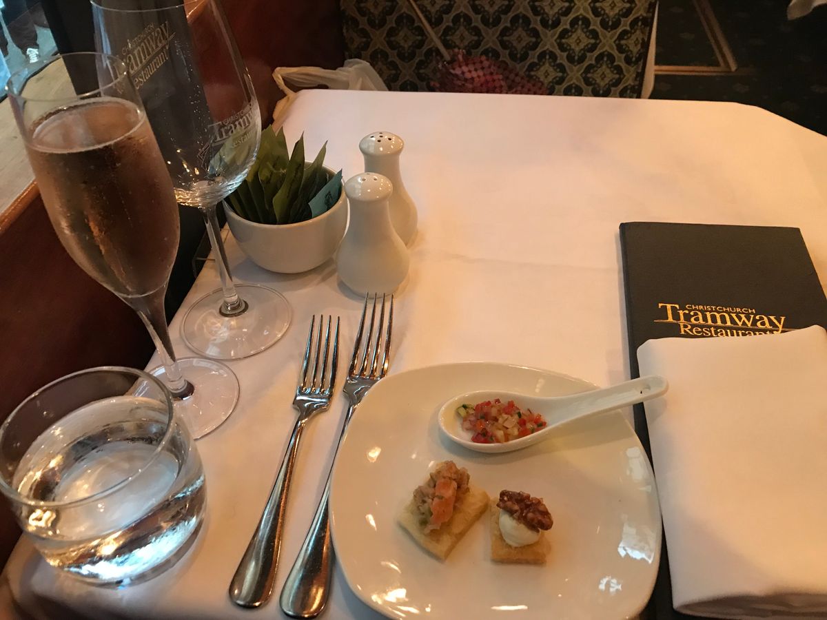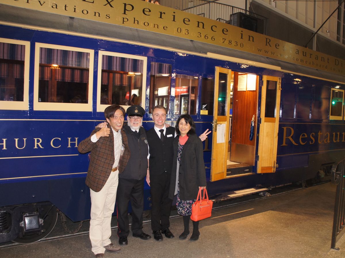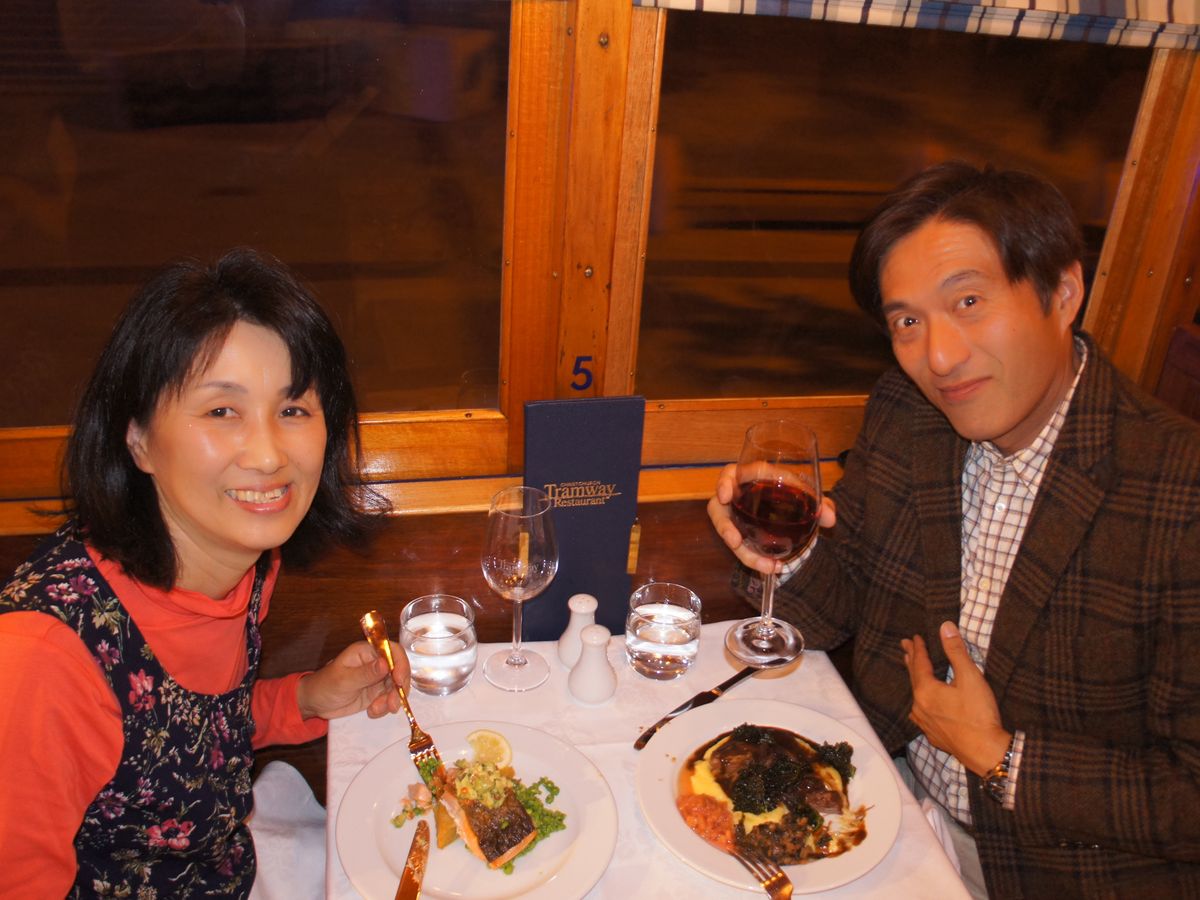 留学中の娘に会いに夫婦で初めて行ったニュージーランド。トラムディナーは私の念願で、3人で利用させていただきました。座席は小ぢんまりしていますが、温かみのある雰囲気の車内。その中の小さなキッチンで、シェフが手際よく料理を準備している様子も見る事ができました。品数は多くないけれど、料理は一品一品手が込んでいてボリュームがあり、どれもとっても美味しかったです!料理はそれぞれ2〜3種類から選ぶ事ができ、アレルギー対応もしてもらえるので安心です。娘が隣の座席の海外からの旅行者の方に勇気を出して話しかけ、親しくなって、最後には一緒に写真を撮ったりして、とっても楽しい思い出になりました!クライストチャーチに行かれる方にはぜひおすすめです‼︎