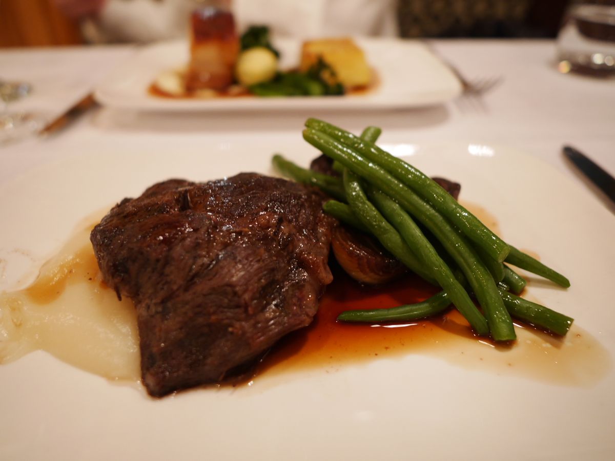 車内はとても綺麗で、温かく過ごしやすい環境でした。料理はチーズがとても美味しかったです!メイン料理のお肉をいただいたのですが、女性には少しボリュームが多いかも。味付けは薄めでしたので、塩胡椒をかけていただきました。女性は魚とかにした方がいいかもしれません。