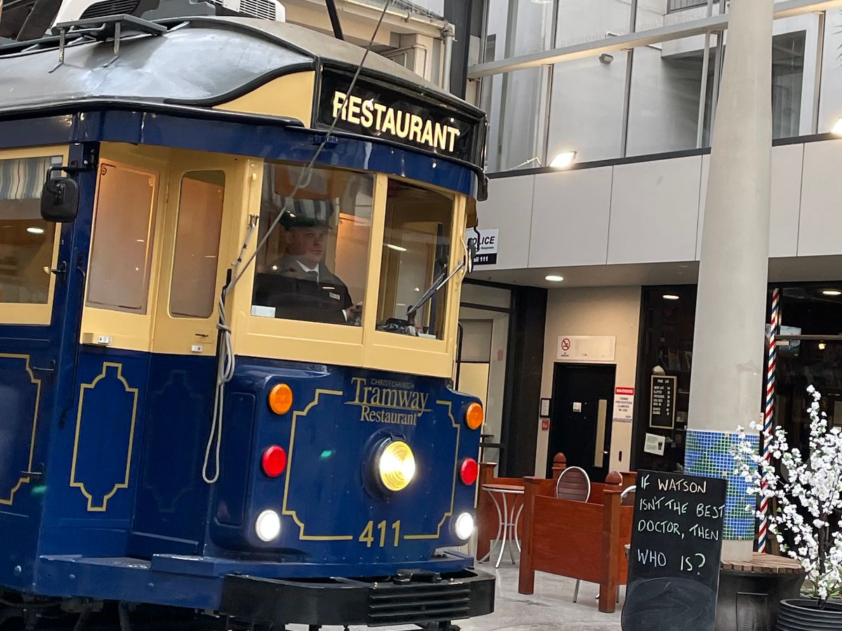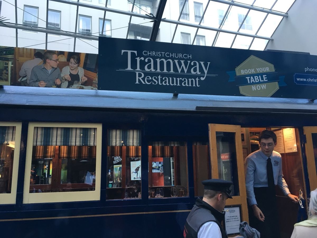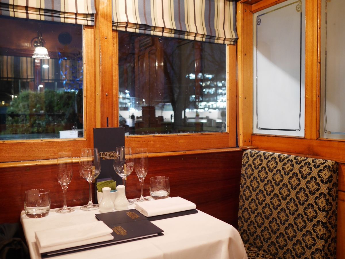 クライストチャーチを訪れた時は冷たい雨の日でした。そういう時に、トラムに乗って夕食を食べながら、クライストチャーチの美しい街並みを眺めるのにはうってつけでした。