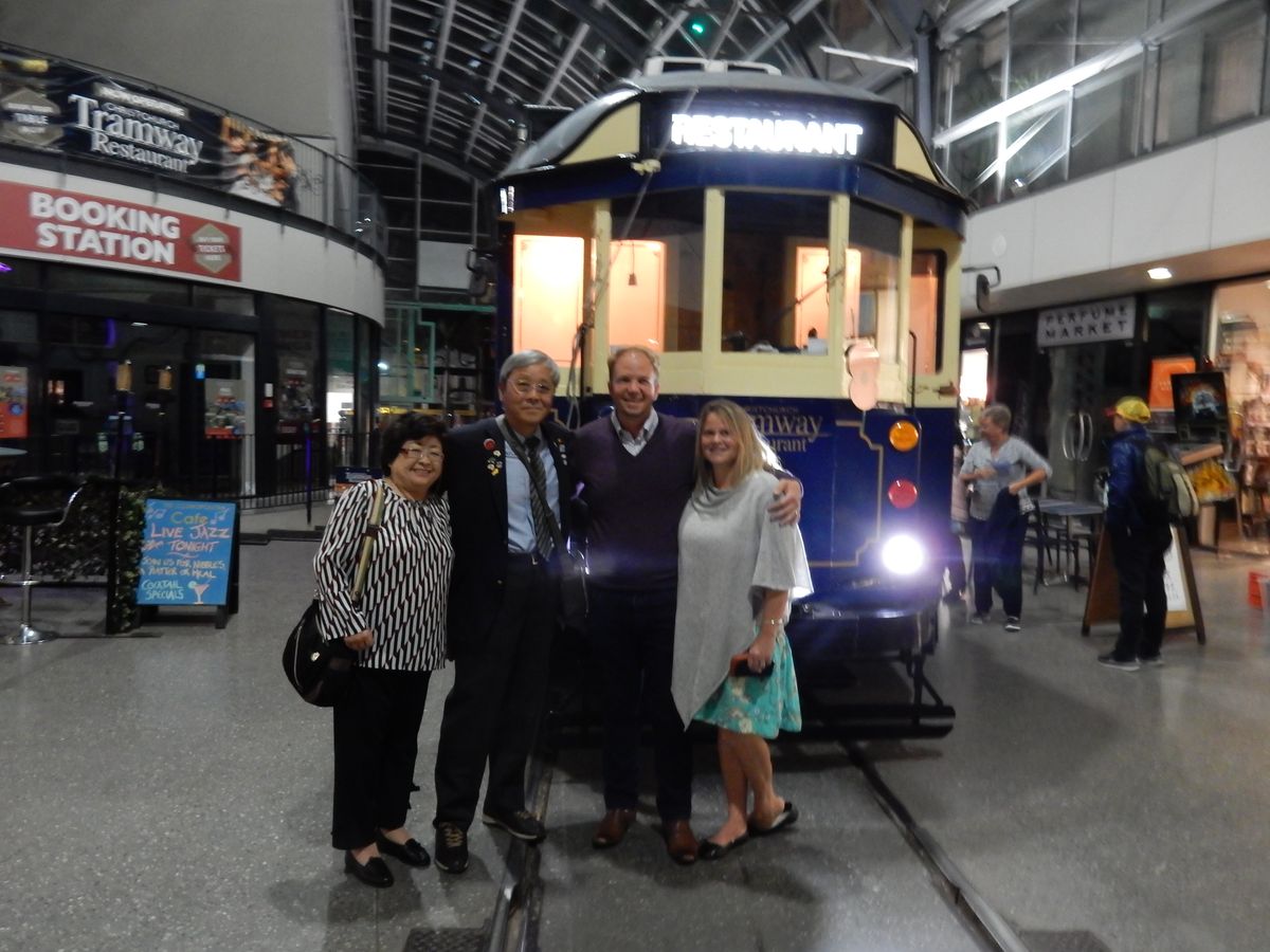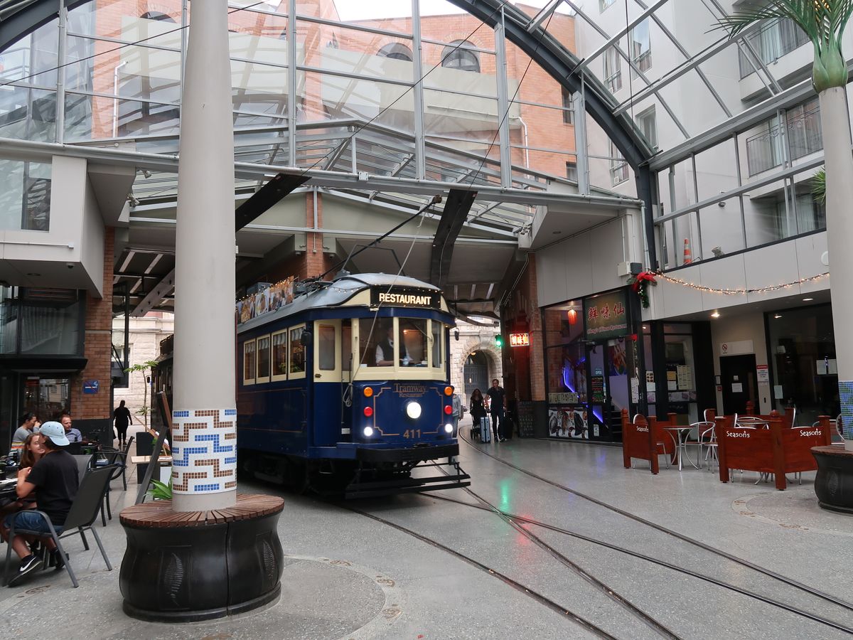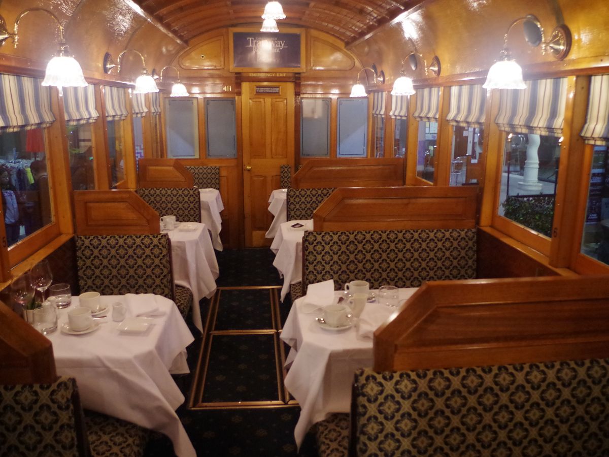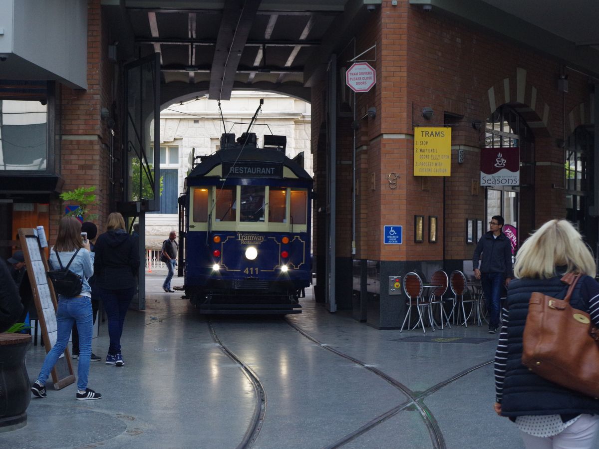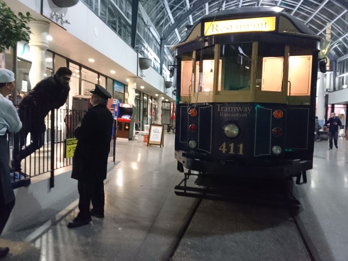 ’18.5.21利用しました。早朝7:40′ホテルの直ぐ側に聳える高山の中腹迄新雪に覆われたクイン-ズタウンを出発し、テカポのレストラン『湖畔で』天ぷら定食(これが豪華なんです)とわかめ饂飩の昼食を済ませ、クライストチャ-チの投宿ホテル、イビス・クライストチャ-チに着いてのが16:30′。走行距離580㎞でした。初めてのクライストチャ-チですので、トラム乗場1番が分からずタクシ-を利用しましたが、タクシ-は近いから歩いて行けと言いましたが何とかお願いして乗せて貰いました。ところが乗場2番で下ろされてしまい、指定した乗場1番ではありません。タクシ-会社に電話をし、文句を言いもう一度タクシ-を廻すように言いましたが(クライストチャ-チには流しのタクシ-はなく、ホテルやタクシ-プ-ル迄行かないと乗れません)、駄目で仕方なく一番乗場まで歩きました。一区間ですがほんの100m程でした。無事にcheck-in。受付のマダムは、笑顔のとても素敵な妙齢の女性。乗車すると、既にテ-ブルにはロゼの様な発泡酒と付け出しが置かれていました。内装の椅子や壁面のクロスは非常に立派で、狭くても贅沢感溢れる室内です。甘口のワインをお願いすると「Vavasour Riesling」(何処までが会社名でどれがワイン名なのか分かりませんが、眼鏡の似合うハンサムなウェイタ-が書いてくれました)、これが非常の美味で多分下車の21:30′迄にボトル一本以上は空けたと思います。サラダ、メインディッシュ、スウィ-ツは、3~5種類ほど有る中から好きな物が選べます。サラダは青リンゴのサラダ、青リンゴが非常に甘くて美味、メインは豚肉、大きな肉の塊で味付けも絶妙、その付き合わせの濃い紫色の野菜の味付けがこれまた旨い、スウィ-ツはチ-ズにしましたが二種類のチ-ズに山盛りのクラッカ-、最後はお代わり自由なコ-ヒ-でした。全ての料理は、目の前のほんの幅1m程のキッチンで、シェフが一つ一つ、乗客の注文に合わせ、調理します。18:50′から21:30′迄、全然飽きずに夕食を楽しみました。同じ所を往復したり、運転手さんが降りてパンタグラフを後ろから前に持って行ったり、面白い場面も見られます。翌日、同じ所を普通のトラムで一周しましたが、40分しか掛かりません。そこを何回か行ったり来たりして、食事を楽しむのも亦一興。今回の新西蘭の旅で一番面白かったです。かつて学生時代、四年間過ごした京都では、何処に行くにも市電が利用できましたが、今はありません。車両は、時代の波に押し流されて、広島市や長崎市に売られてしましました。新しい国でこの様な古い物を残そうという思いは、尊敬すべき事だと思いました。トラムレストランのスタッフの皆さん、素晴らしい思い出を有難う。絶対にお勧めです。