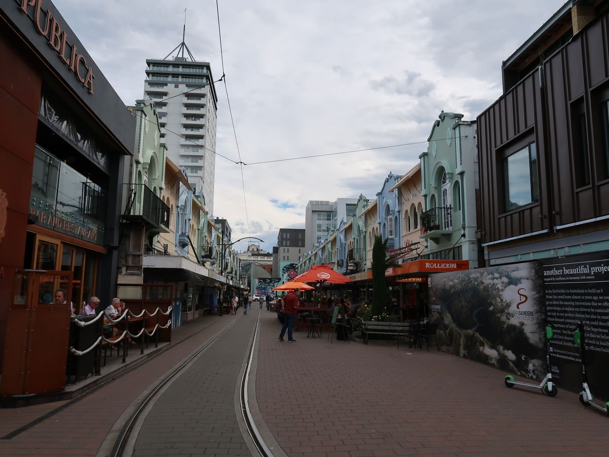トラムは街の中心から南側を数周し、次に北側を数周します。地震の復旧がまだまだこれからというところをいくつも通ります。また、進行方向も逆になったりするので両側の景色が楽しめます。