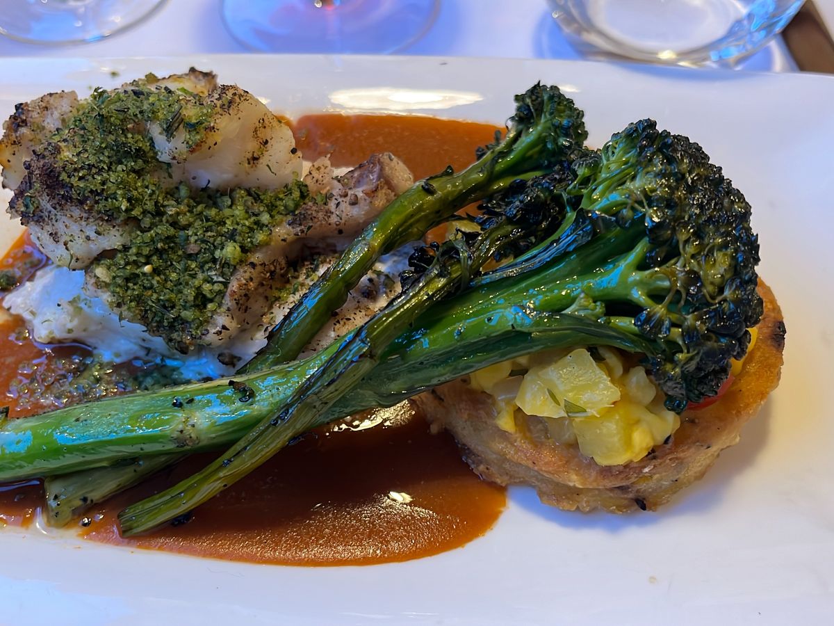 白身魚とブロッコリーの料理が最高に美味しかった。英語がほとんど話せない私たちに、店員さんは親切にメニューを説明してくれた。