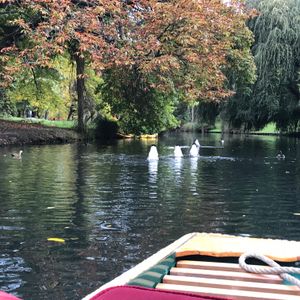 秋の気配の中、ゆったりしたエイボン川の水上散策。川面の水鳥が、船と一緒に泳ぐ。川辺の木々は、黄葉した木や、緑そのものの木々もあり、結構カラフルな情景を楽しめました。