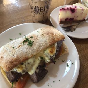 実物を見ると、、ステーキ1枚(むちゃくちゃ大サイズ)が挟まれてあるサンドイッチで、デザートをシェアしても食べきれませんでした。