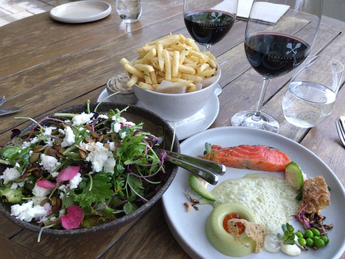 いいお天気に恵まれてワイヘキ島を満喫できました。当日は平日ということもあり、ツアー参加者は私たちだけでしたのでワイナリー1軒と後2か所は好きに選べると言うことでオリーブオイルのテイスティングと景色のよい所と町の散策をお願いしました。初めにオリーブオイルテイスティングに行きました。フレンドリーなスタッフにオリーブオイル3種類とオリーブの実、オリーブオイルを使ったドレッシングにあとマヌカハニーもテイスティングできました。どれも新鮮で美味しかったです。ワインテイスティングでは6種類の赤白ワインをテイスティングして、ワイヘキ島産のワインを買いました。ランチのレストランはお料理がとてもオシャレに盛り付けられていて味も美味しかったです。夫が地ビールをテイスティングしたかったので地ビール4種の飲み比べセットが注文できました。町の中心街も少し散策して満足しました。ガイドさんも親切でした。