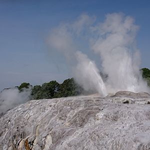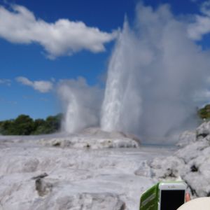 当日は時間通りにホテルに迎えに来てもらい、この日は40名近い人数だったので途中で大型バスに乗り換え。まずはワイトモ洞窟へ。鍾乳洞を見た後、ボートに乗って楽しみにしていた土ボタル鑑賞へ。土ボタルが洞窟の天井にとってもきれいに見えて大満足!そして、ゴンドラに乗ってロトルア湖を一望するレストランでビュッフェランチ。ラムやビーフのステーキ、ムール貝、パブロバなど美味しくいただきました!午後はロトルアへ。キウイバードを見ることができたうえ、ものすごい勢いで噴き出している間欠泉も見ることができて、言うことなしでした!!確かに移動時間は長いですが、バスの中ではガイドさんがいろいろな話をしてくれて楽しかったですし、参加する価値はあると思います。