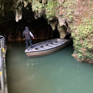 早朝ちょっとトラブルがありましたが、とてもご親切に対応していただき、ツアー内でわかりやすく説明していただきました。鍾乳洞に入る前に詳しく説明があり真っ暗な鍾乳洞に船で入った時は大感激でした。ホビット村でのガイドさんの説明もわかりやすく訳してくださいました。
