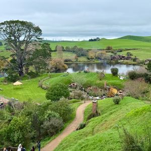 オークランドシティで待ち合わせ(解散時も)でした。近くのホテルに滞在していましたが集合時間が7時半でしたので朝食を急いで食べて向かいました。バス乗車時にチキンかベジか昼食を聞かれてミネラルウォーターももらえます。道中は運転手がジョーク混じりのガイドをしてくれて楽しかったです。ホビット村ではツアー参加者は乗ってきたツアーバスで移動するようなので、現地の緑色のバスには乗りません。結構間違える人が多いみたいです。現地はガイドが案内してくれますが私たちのツアーは全部英語でした。アップダウンが結構あるのと気温によっては汗ばむかもしれません。昼食はワイトモ観光後にバス内で食べました。ランチボックスに入った昼食でしたがシートに落としそうな具材もあるので小さな子供は要注意。ホビット村では18歳以上ならパスポート見せればビールが飲めます。トイレ休憩も複数回ありますが帰りは休憩なしなのでビール飲む方で「近い」方は注意が必要です。