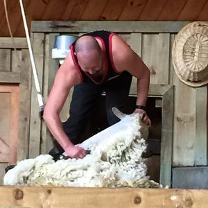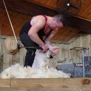 牧場へ着いた後、羊の毛刈り、牧羊犬のショー、