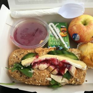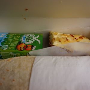 →おやつ(フルーツ、ドリンク) ランチ(大きいサンドイッチ、カップケーキ、ドリンク、デザート、フルーツ) おやつ(サンドイッチ、ドリンク)で盛り沢山で美味しかったです。