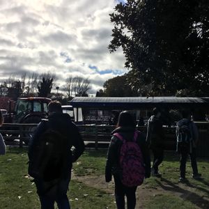そして牧場内を回るためトラクターに付けられた車に乗せられ牧場内を散策。