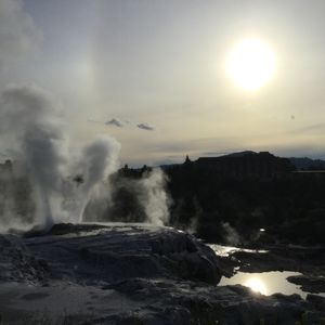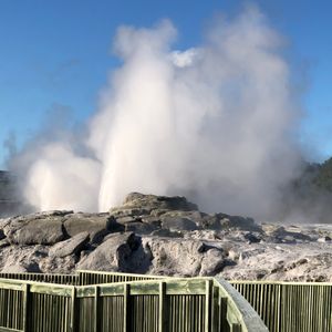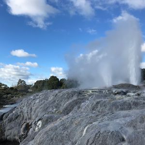 ロトルアの間欠泉はちょうど高く吹き上がっているところでラッキーでした。