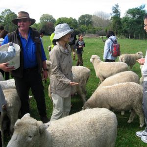アグロドームは観光牧場。日本人には現地で働く日本人がガイドについてくれます。お世話になりました。ありがとうございました。羊やダチョウへの餌やり。牧羊犬が羊を指定場所へと誘導するショー、羊の毛刈り実演と盛りだくさん。羊が目の前であっという間に丸裸。