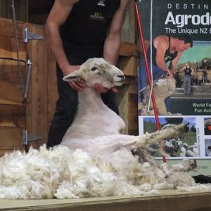 アグロドームでは現地で働く日本人スタッフがガイドについてくれます。羊やダチョウへの餌やり。牧羊犬が羊を指定場所へと誘導するショー、羊の毛刈り実演と盛りだくさん。羊が目の前であっという間に丸裸。
