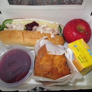 昼食は、チキンサンドかベジタリアンサンドが選択できます。