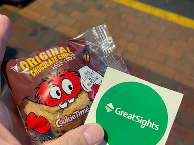 参加者は胸に付けるシールとクッキーを受け取ります。バスの中は自由席でした。