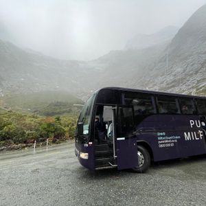 Took around 5 hours journey from Queens town. Informative and nice verbal guide almost all the way during the bus trip. Very beautiful scenary of Milford Sound. Flight to Queens town was safe and convenient and we enjoyed another face of the mountains.