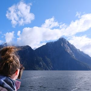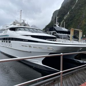 ツアー当日、出発時は曇りでミルフォードサウンドに近付くにつれて雨、そして少し強い雨の中のミルフォードサウンドでした。そのためガイドブックに載っているような景色は見られませんでしたが、雨で水量が多かったせいか、それはそれで迫力ある幻想的な景色に大感動でした。クルーズ後半は雨も小降りになったのでデッキに出て景色を楽しみました。もしもまた訪れる機会があれば、やはり晴れたミルフォードサウンドを見てみたいです!! その他ツアー全体を通しては、外国人の参加者がほとんどでしたのでより海外気分を楽しめました。移動中の車内ではドライバーさんが要所要所で解説をしてくれますが、英語力がないためほぼ理解できず、、、たまに車内が盛り上がって楽しそうでした。クルーズ船の乗船はお昼を過ぎていてお腹ペコペコでしたが、出港後まもなくカウンターでランチを受け取れます。肌寒かったので温かいパイとホットドリンクがうれしかったです。ツアーに参加するにあたり多少の不安もありましたが、こちらのクチコミを参考に予習をして、最後まで楽しむことができました!!